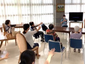 リハビリスタッフ3名が参加し、認知症予防のための脳トレや体操を紹介させていただきました。